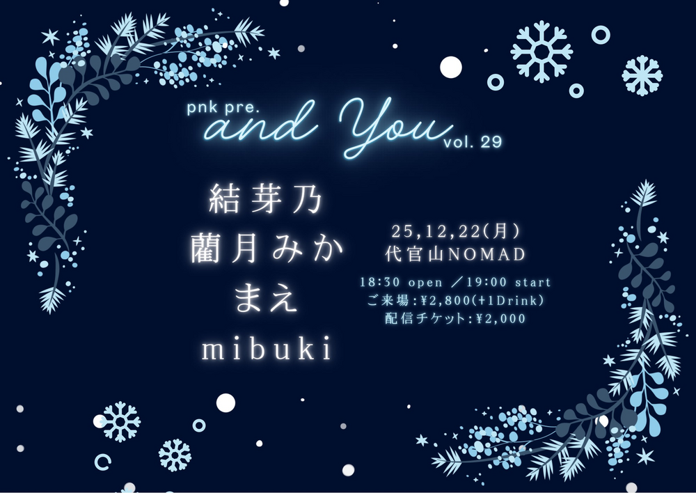 12月22日(月) 代官山NOMAD 「and You」vol.29 出演決定⛄